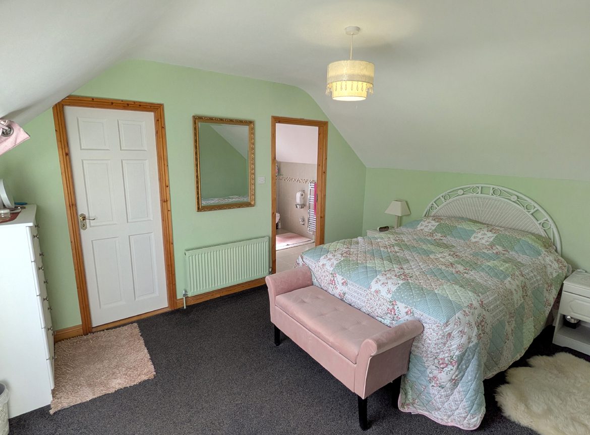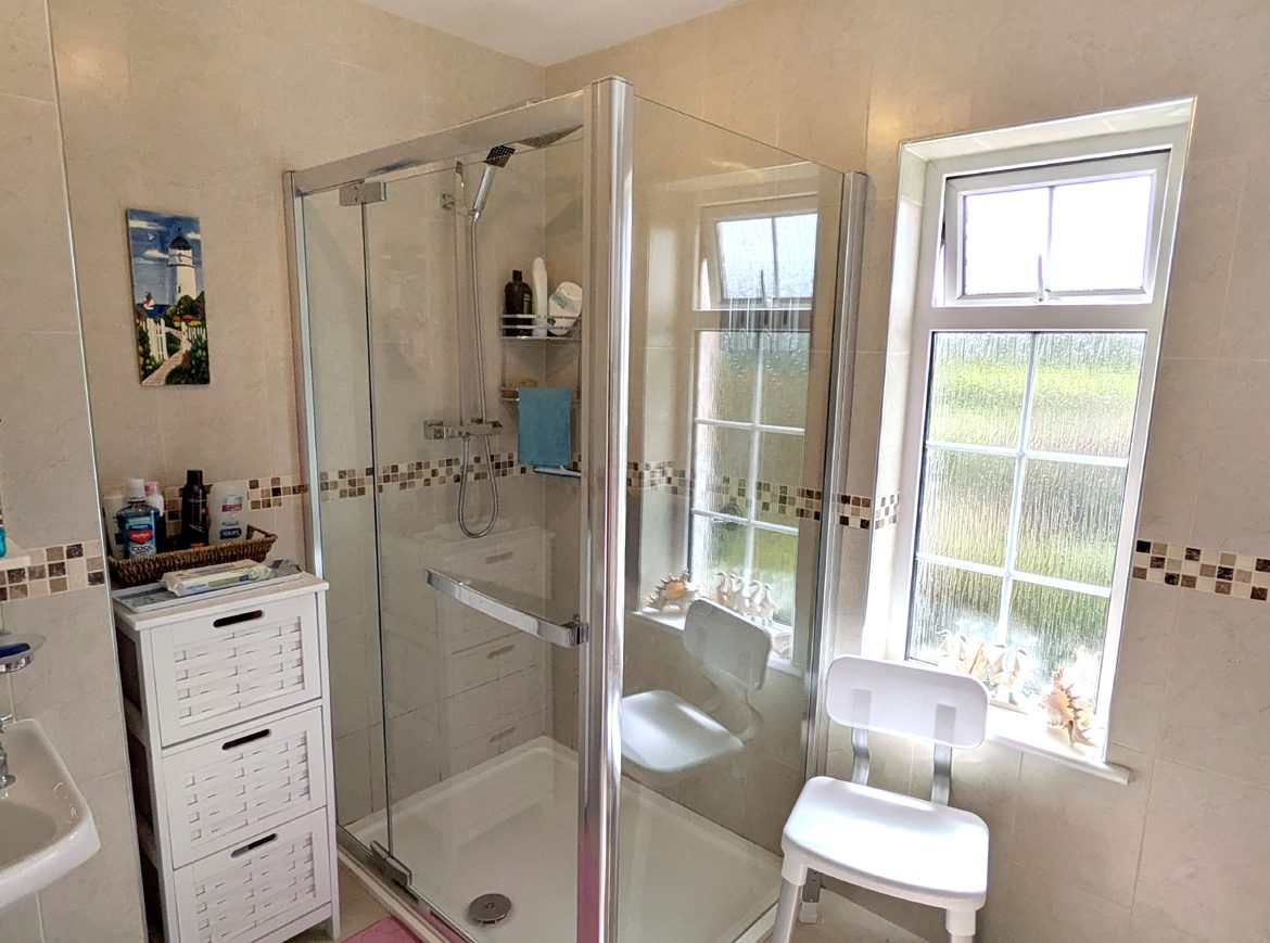 En-Suite – 2.85m x 2.30m tile flooring, fully tiled walls, large walk-in shower, WC and WHB.